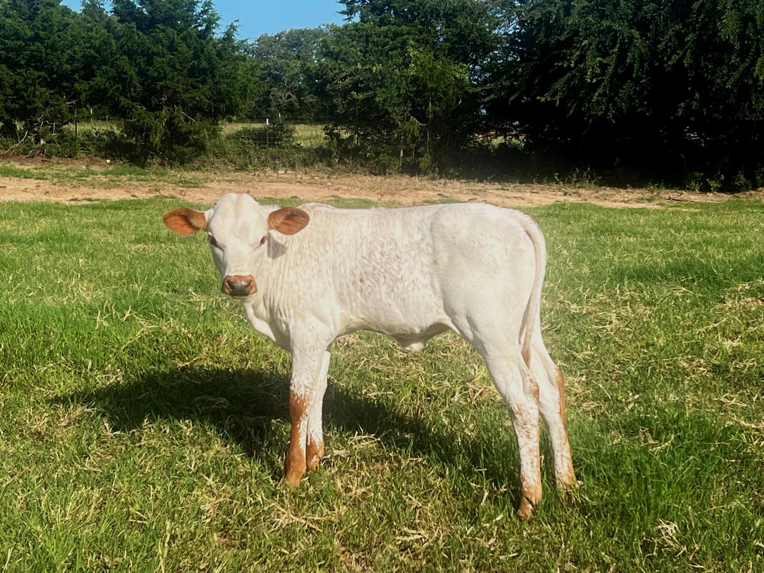 Cinni is halter broke and is a very sweet, curious heifer. She loves to eat cattle cubes from your hand and enjoys having her head scratched. She had her first calf in May 2025.